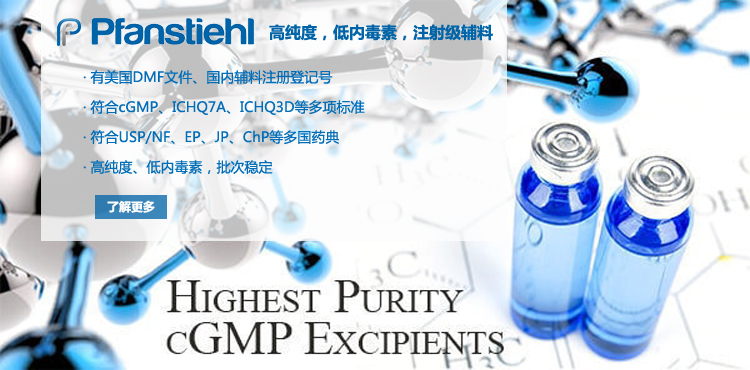 “熱烈祝賀Pfanstiehl的注射級甘氨酸Glycine(G-140)喜獲CDE登記號F20250000403, 這是Pfanstiehl產品獲得的第18個CDE登記號!”甘氨酸在醫藥輔料制劑中應用廣泛,, 可作為緩沖劑,增溶劑,穩定劑等,具有諸多優勢。Pfanstiehl秉承一貫高品質理念,為滿足全球生物制藥行業對于高品質甘氨酸的需求,隆重推出的注射級甘氨酸Glycine (G-140), 具有超高純度,超低內毒素,超低金屬殘留的特點,單獨檢測29種金屬離子,并且新增DNA,RNA,DNA酶,RNA酶和脂肪酶,亞硝酸鹽等多項質量指標的檢測,符合多國藥典規定(USP, EP, BP, JPE, ChP),可用于生物治療性藥物和疫苗的生產。產品信息:· 產品名稱:Glycine, High Purity, Low Endotoxin, Low Metals, USP, EP, BP, JPE, ChP (G-140)· 中文名稱:甘氨酸· 分子式:C2H5NO2· 分子量:75.07 g / mol· CAS號:56-40-6· 產品貨號:G-140產品特點: · 超高純度,超低內毒素,超低微生物含量,超低金屬雜質殘留· 質量指標新增DNA,RNA,DNA酶,RNA酶,脂肪酶和亞硝酸鹽檢測· 符合多國藥典:USP, EP, BP, JPE, ChP· 符合ICH Q3D標準· 符合GMP標準· 已獲DMF和CDE登記號 產品應用:· 緩沖劑· 穩定劑· 增溶劑如果您對Pfanstiehl注射級別Glycine G-140感興趣,歡迎聯系Pfanstiehl 中國區代理商北京西美杰科技有限公司獲得如下詳細的產品概況說明文件和測試樣品。Pfanstiehl Inc.最新產品系列如下,歡迎聯系北京西美杰科技有限公司獲取100g裝免費樣品。北京西美杰科技有限公司為Pfanstiehl中國代理,為客戶提供完善的技術支持與售后服務。歡迎撥打西美杰客服電話400-050-4006或者登陸網站www_xmjsci_com.jiayuan9.com了解更多信息。 更多>